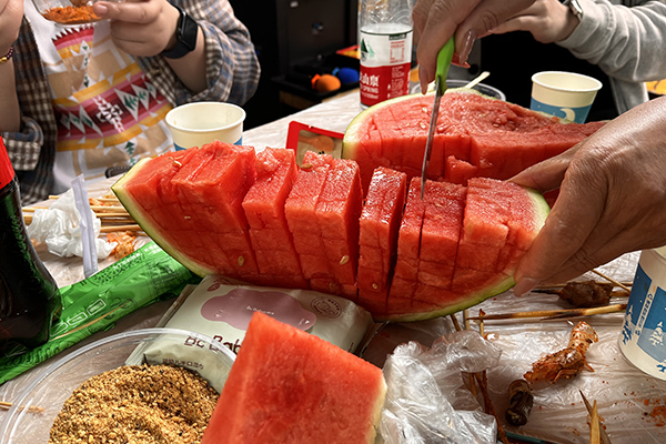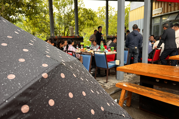 同事們圍坐在一起,分享著美食與歡笑。雨水打在樹葉上,發(fā)出沙沙的聲響,仿佛是大自然的和聲,為我們的聚會增添了幾分浪漫與詩意。雨水似乎也被我們的歡樂感染,輕輕地拍打著地面,仿佛在為我們鼓掌。
